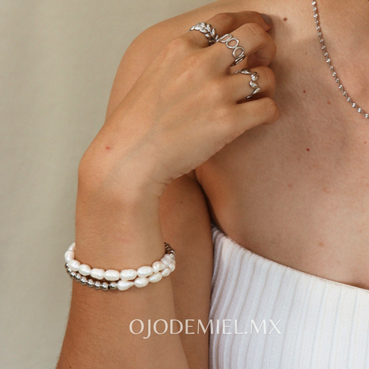 OfertaPULSERA PERLAS PLATEADA