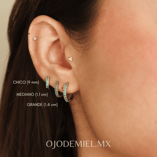 HUGGIES PLATEADOS ZIRCONIAS VERDES