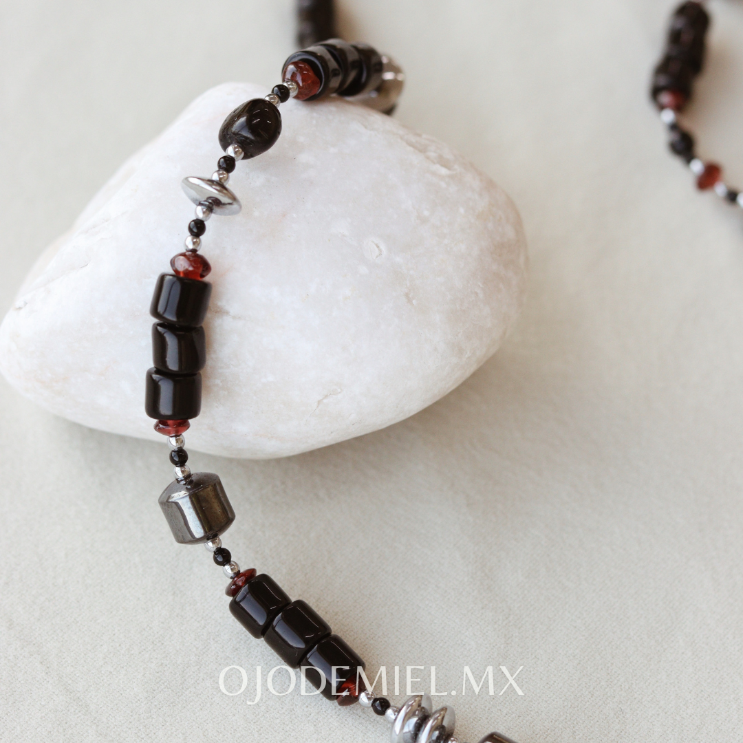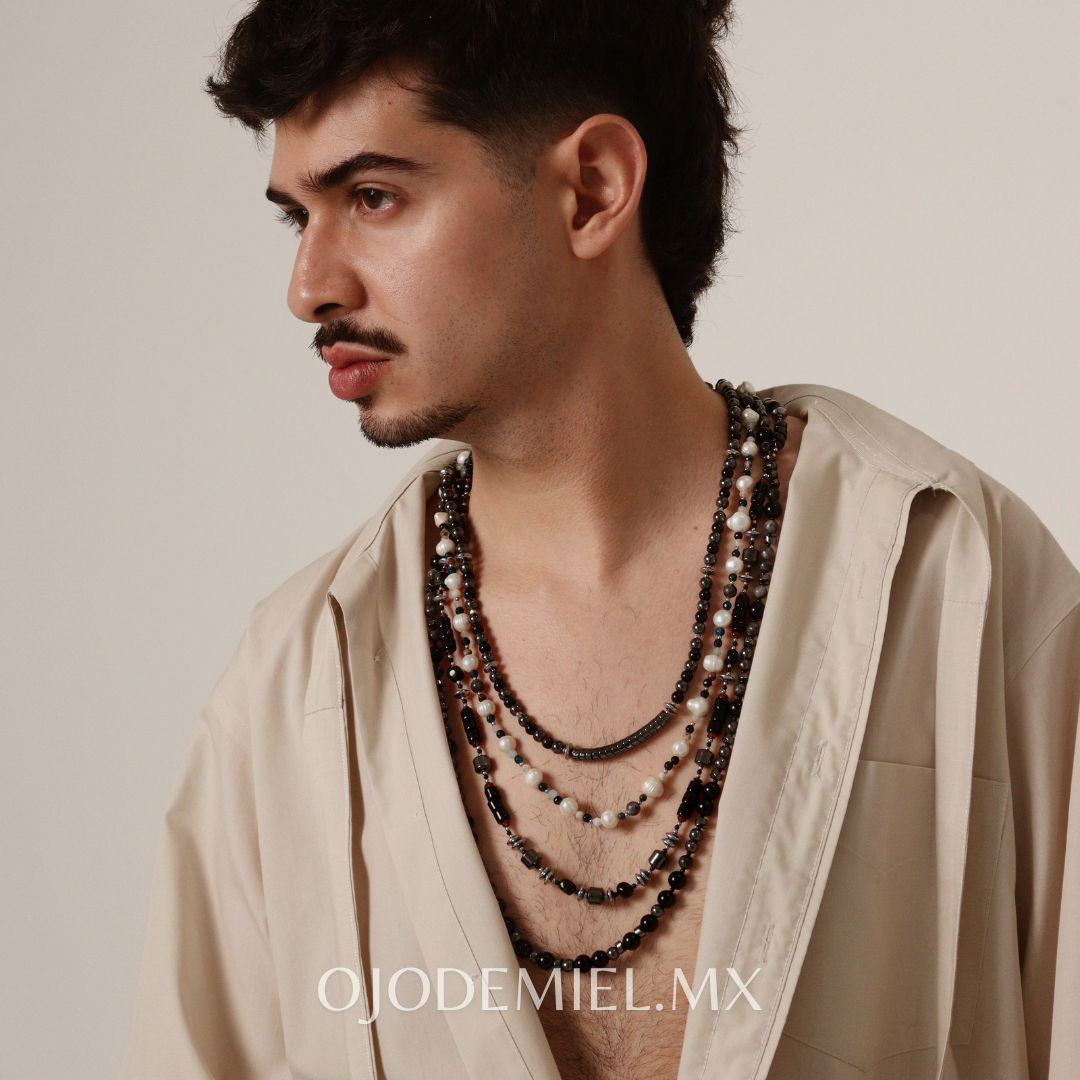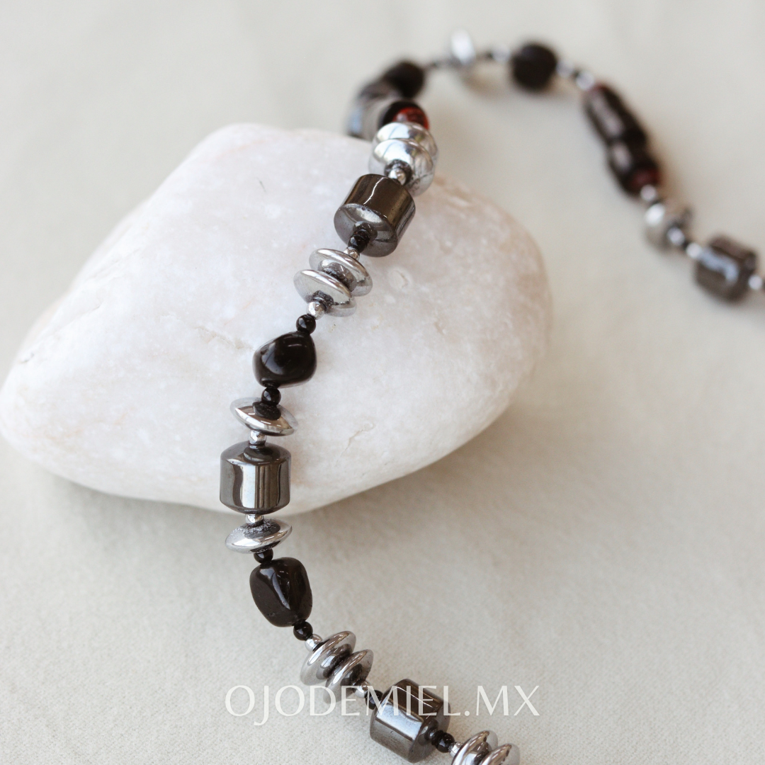 Cadena diseñada y hecha artesanalmente con piedras de río natural y piedra estilo oxford. Lleva TU ESTILO A TODAS PARTES con nuestro collar "chaac", combínalos con tus favoritos!!