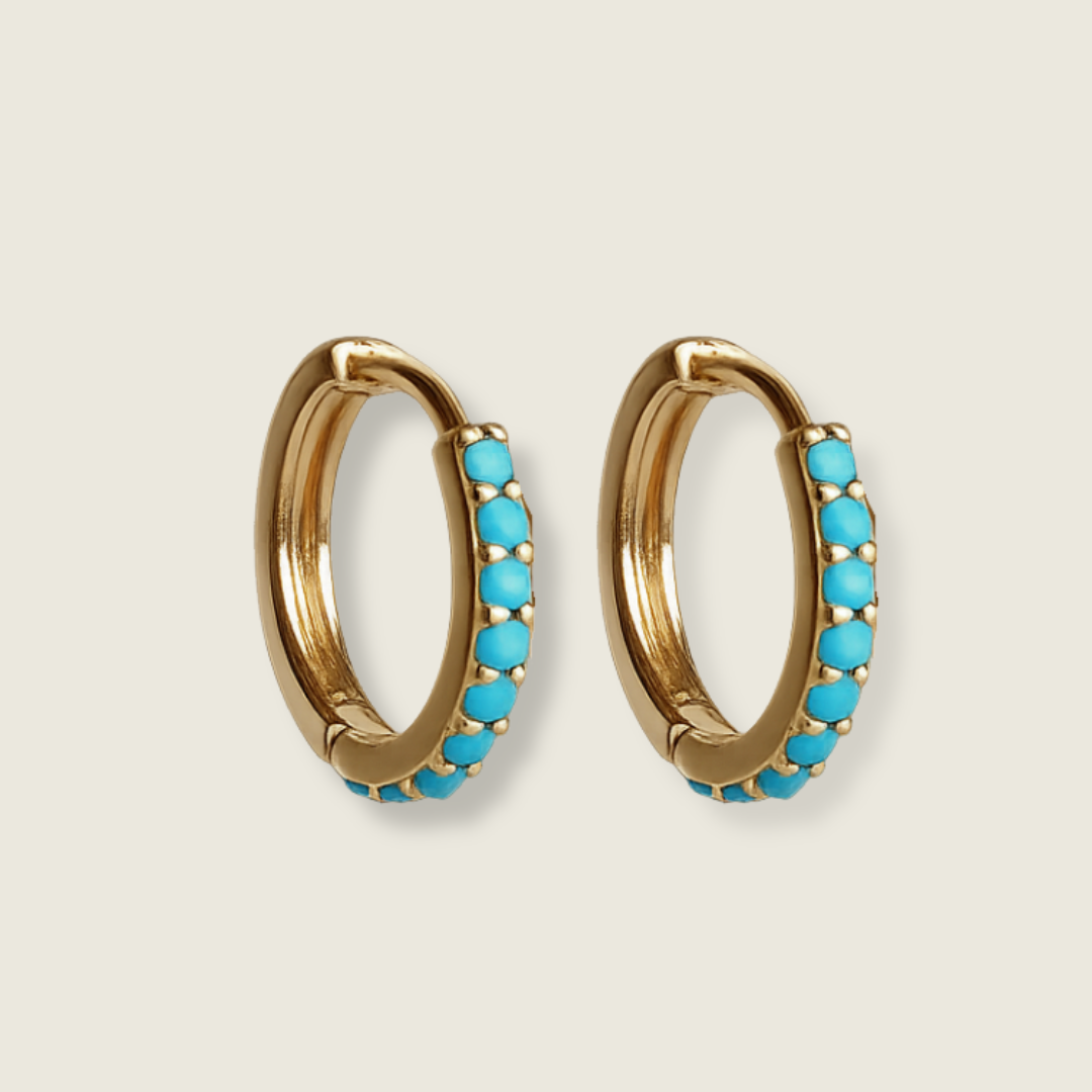 Materiales: Chapa de oro de 14k y zirconias azul turquesa.
