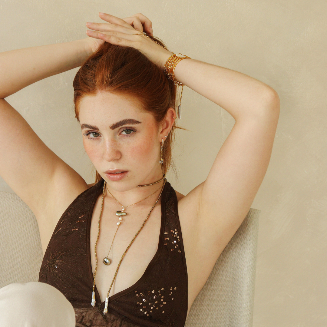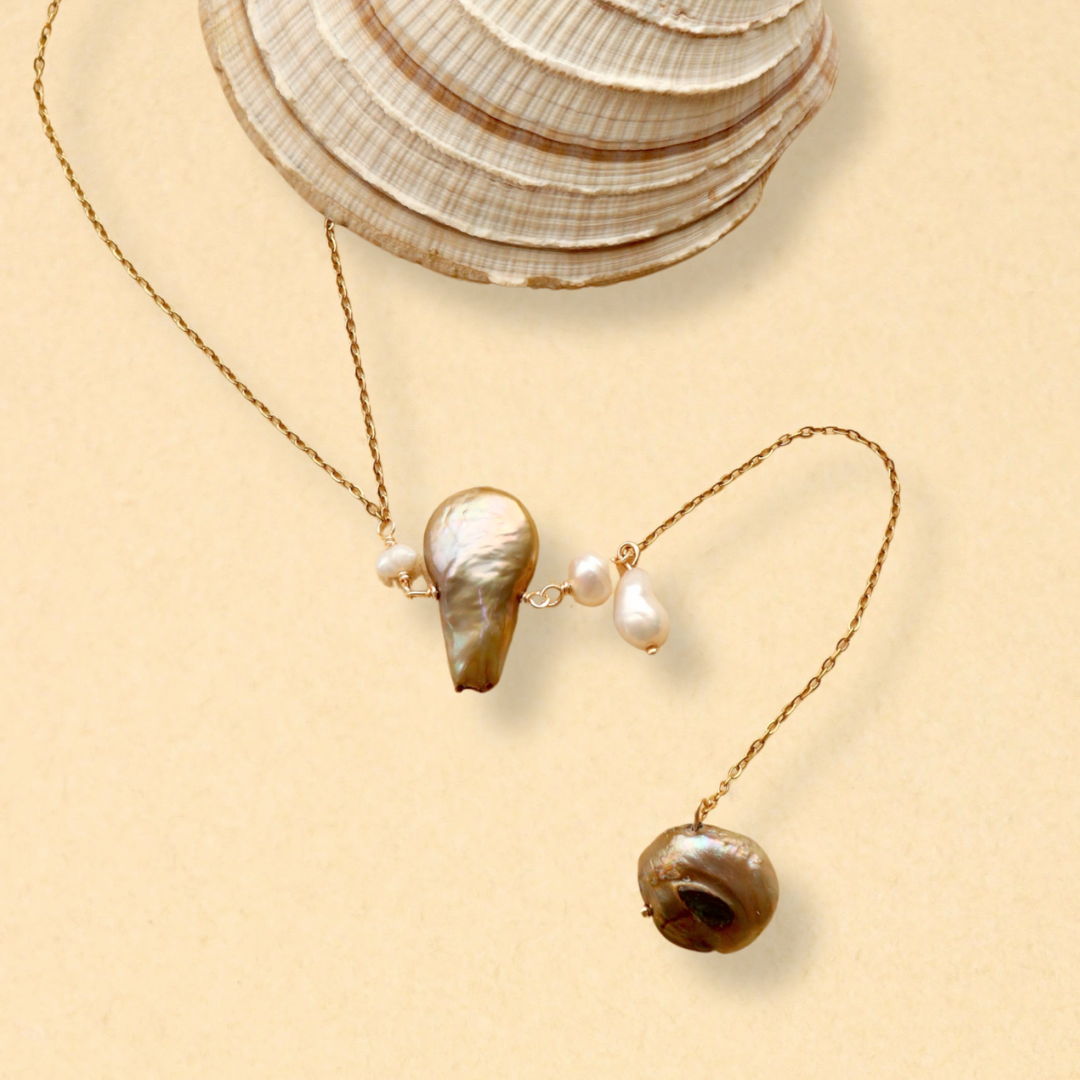 Los diseños de joyería en Ojo de Miel siempre serán una delicia y este layer no es la excepción! Sus hermosas perlas en color verde tornasol y forma desigual será uno de tus layer favoritos!